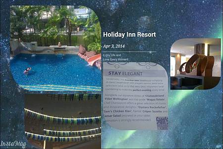 房間的後門陽台一看就是,有水上溜滑梯、水上籃球……一直在向我們招手,